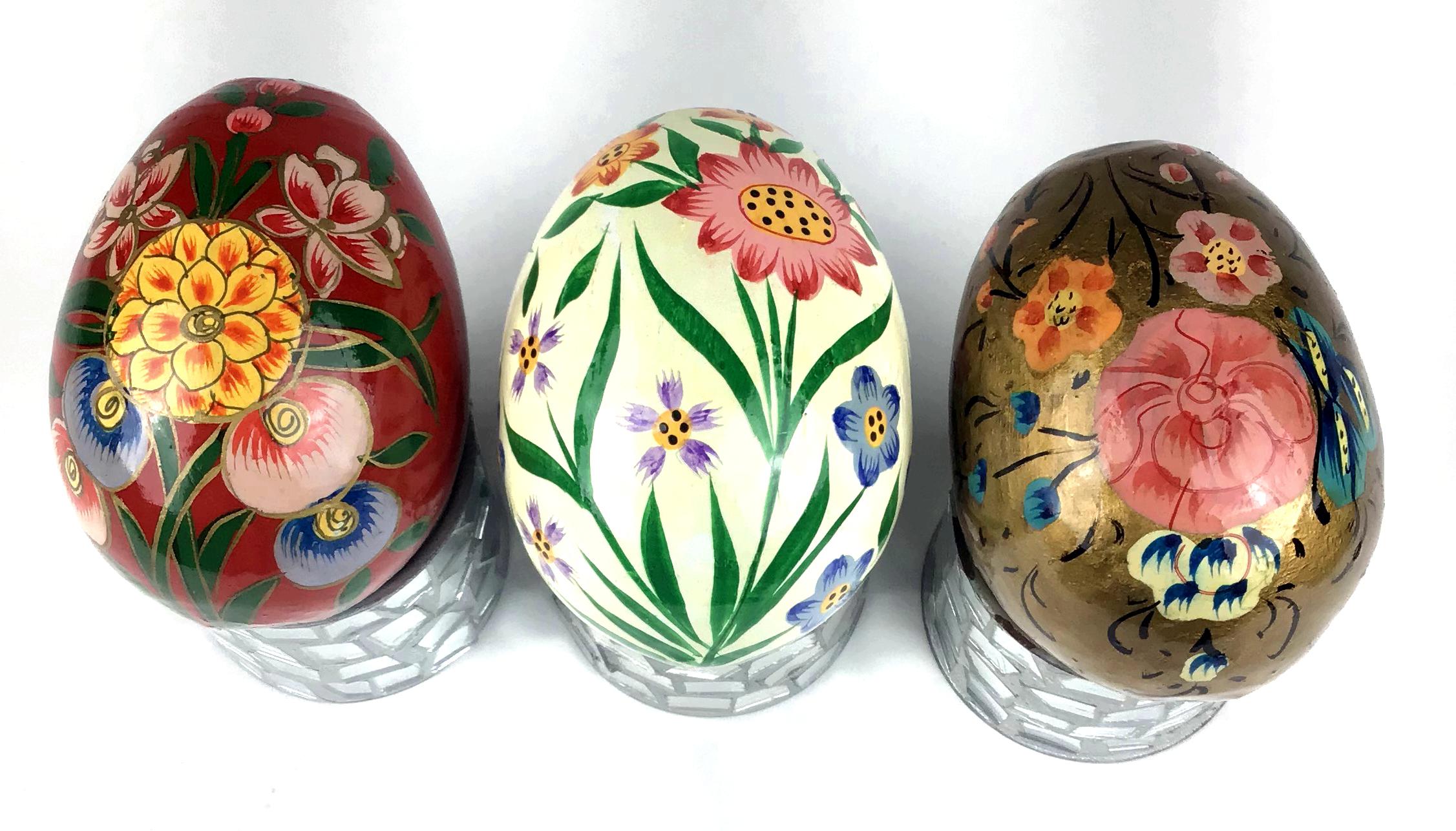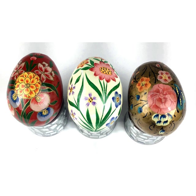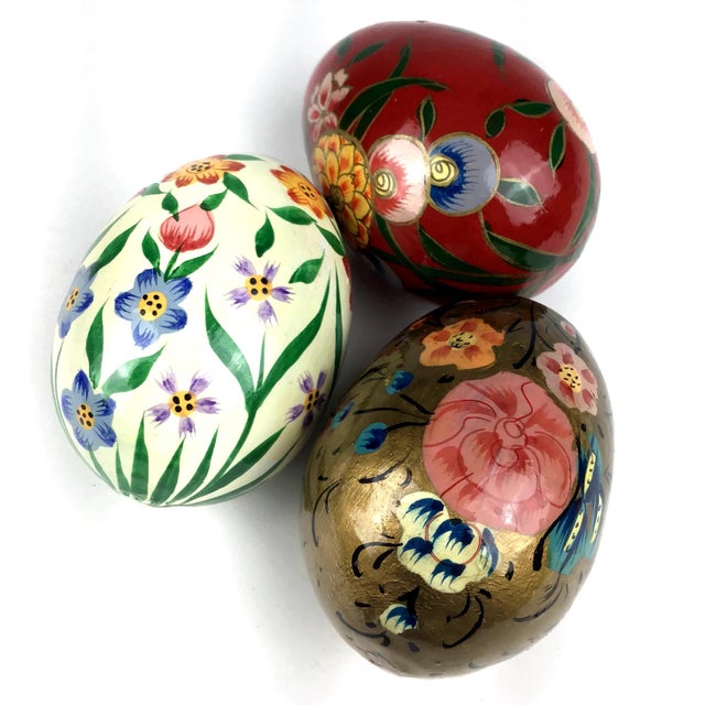 1990s Three Hand Painted Wood Eggs Chairish